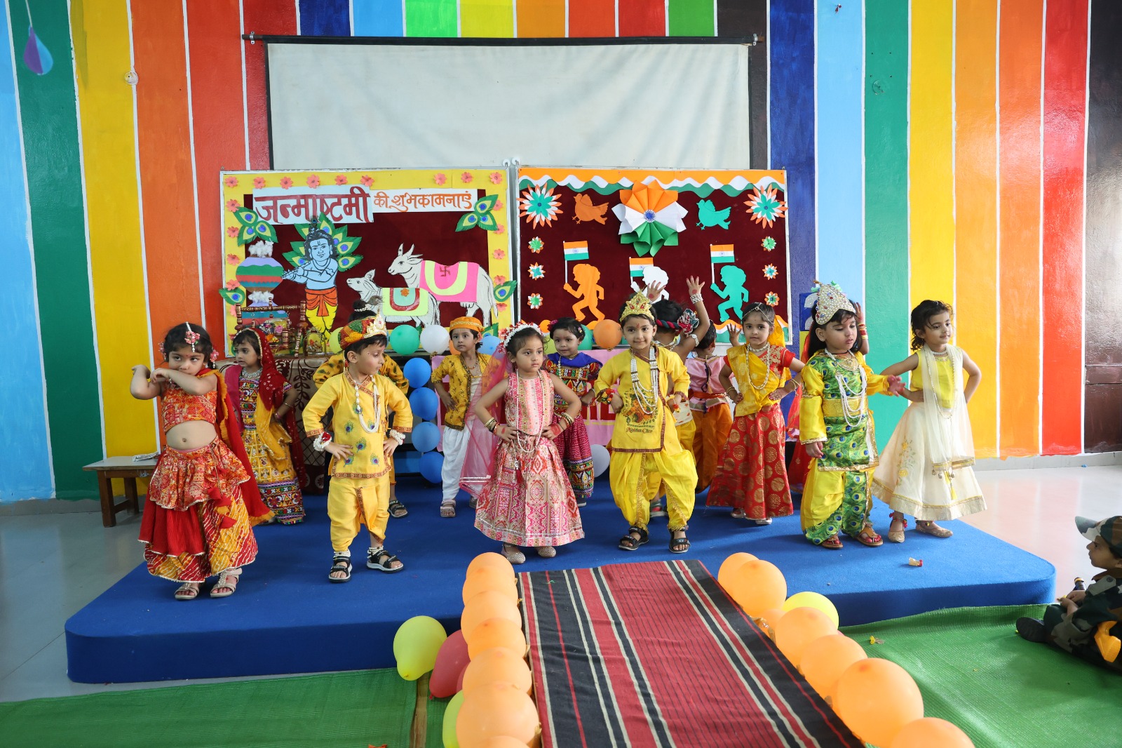 In the pre-primary block, the little ones showcased their creativity by dressing up as Radha Krishna in a fancy dress. Their innocent charm and confident performances brought smiles to everyone’s faces.
