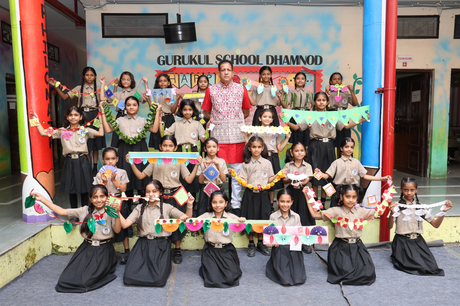 The Gurukul School, Dhamnod, witnessed a vibrant display of creativity as students from classes 1 to 5 participated in the Toran (Fistoon) Making Competition held on 25th September. The event celebrated the artistic talents of young learners, blending cultural traditions with festive innovation.
